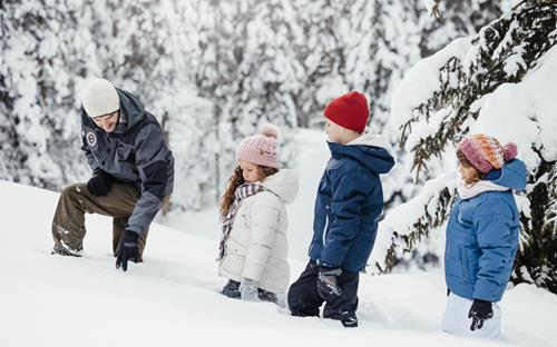- Skianzug oder wasserfeste Hosen und Jacken