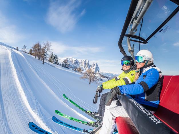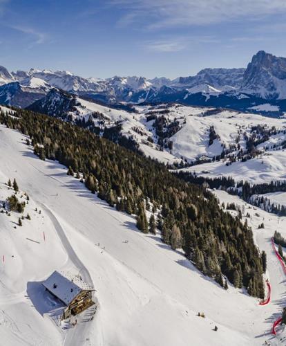 Thanks to the daily, multi day and seasonal ski pass of Dolomiti Superski, skiers can enjoy 12 ski areas, with a total of 1,220km of ski runs: