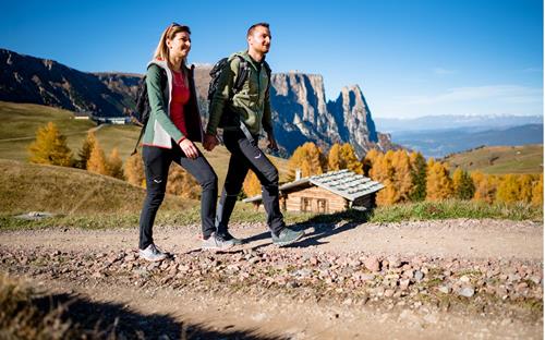 golden months come, a very special atmosphere awaits you on the Seiser Alm, Europe’s largest mountain plateau. The Alpine air is clearer, the colours of nature more intense, and you can hike to the summits of mountains to enjoy the tranquillity of mother’s nature. Not completely alone though: The radiant autumn sun and the soothing silence of nature accompany you along the way. It’s the perfect time to recharge your batteries and simply enjoy life.