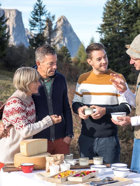 baite e malghe che costellano l’Alpe di Siusi invitano a gustose tappe in ogni stagione.