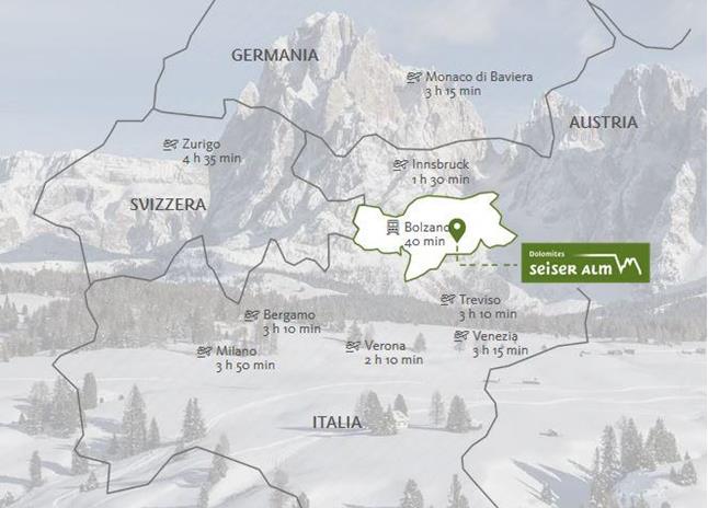 Vicino agli occhi, vicino al cuore: la regione dolomitica Alpe di Siusi si trova sul versante occidentale delle Dolomiti e a nord-est di Bolzano. Troverete qui di seguito tutte le informazioni come raggiungere l’Alto Adige in treno, bus, macchina o in aereo.